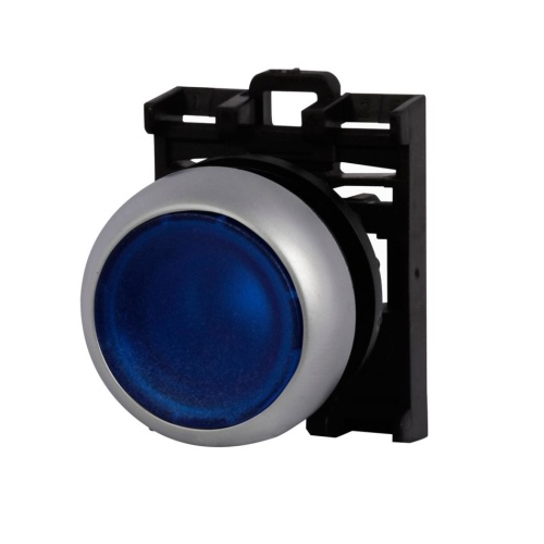 Eaton M22-DL-B - M22 modular pushbutton, 22.5 mm, Flush, Momentary, Illuminated, Bezel: Silver, Button: Blue, IP67, IP69K, NEMA 4x, 13, 5,000,000 Million mechanical operations *NON-CANCELLABLE, NON-RETURNABLE*