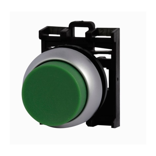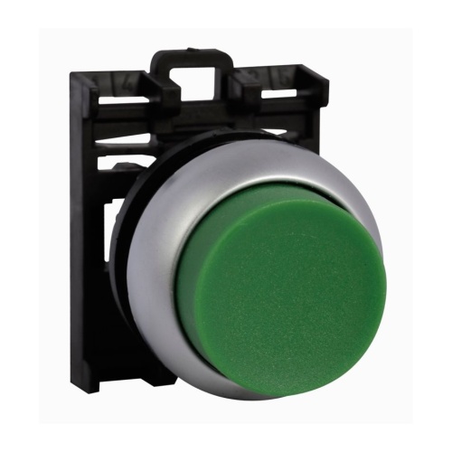 Eaton M22-DRH-G - 22.5 mm, Extended, Maintained, Non-illuminated, Bezel: Silver, Button: Green, IP67, IP69K, NEMA 4x, 13, 1,000,000 mechanical operations *NON-CANCELLABLE, NON-RETURNABLE*