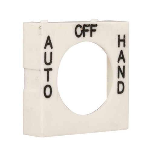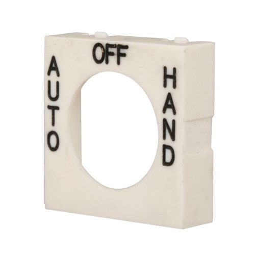 Eaton E30KN68 - E30 pushbutton legend plate, E30 series, Square 3-Position Legend Plate, White, Legend: MAN OFF AUTO, 1/8 In high, Black, Standard *NON-CANCELLABLE, NON-RETURNABLE*
