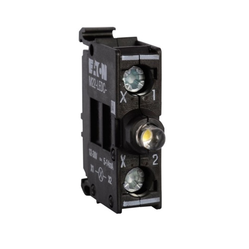 Eaton M22-LEDC230-G - The M22 Series from Eaton offers a host of impressive features for pushbuttons and selector switches. Field convertibility allows operators to switch from maintained to momentary status, and vice versa. Illuminated operators come with long-lasting LEDs. The heavy-duty construction provides minimum IP66 and UL NEMA® type 4X / 13 ratings, with some operators reaching IP67 and IP69K for extremely tough applications. The modular design simplifies assembly and stocking, and options like four-way pushbuttons and USB/RJ45 bulkhead interfaces offer versatility. With over 5 million mechanical and 1.6 million electrical operations, these operators are built to last. Their plastic construction ensures corrosion resistance, making them suitable for rugged environments and washdown applications. Laser engraving ensures high-quality, wear-resistant markings. Additionally, the operators have anti-rotation tabs, allowing for easy installation and preventing unwanted rotation. The direct opening action of normally closed contacts ensures reliable operation even in the event of contact weld. Some M22 operators are ASi protocol-compatible, and others feature USB and RJ45 connections, providing advanced communication capabilities.