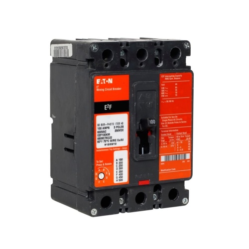 Eaton E2F100KMA02S22 Mining Molded Case Circuit Breaker, E2 Series, 600 Max Volt, 100 Amp, Three Pole