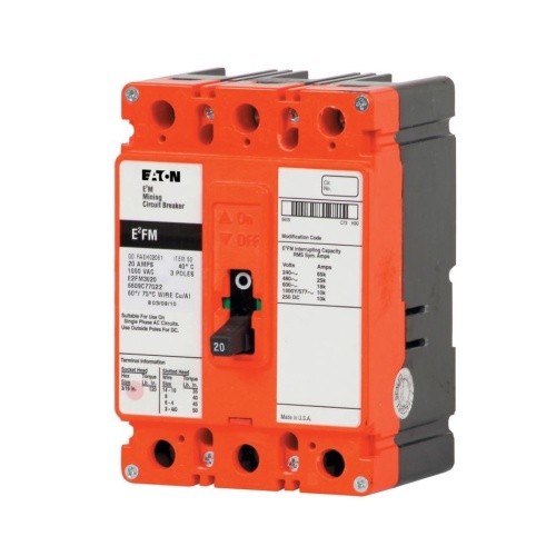 Eaton E2FM100RMA01 Mining Molded Case Circuit Breaker, E2 Series, 577 Max Volt, 100 Amp, Three Pole