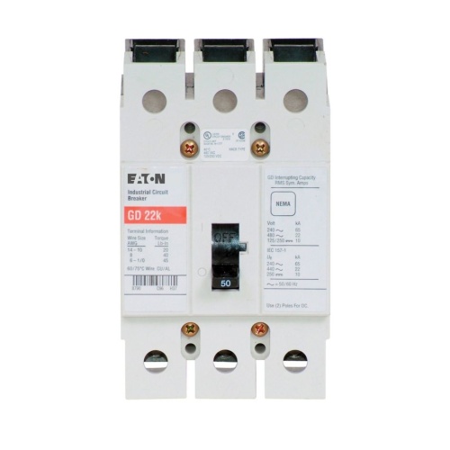 Eaton GD3050A3 Molded Case Circuit Breaker, C Series, 480 Max Volt, 50 Amp, Three Pole