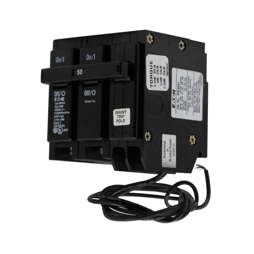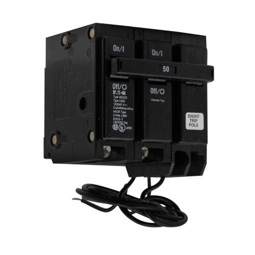 Eaton BR215ST - Type BR 1-Inch plug-on shunt trip circuit breaker,15 A,10 kAIC,Two-pole,120/240V,BR,Common breaker trip,#14-4 AWG Cu/Al,BR,Type BR Loadcenters,Shunt trip included