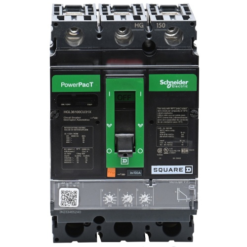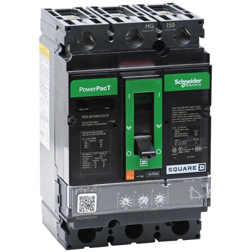 Schneider Electric Square D HGL36100CU31X H Frame Molded Case Circuit Breaker UL 489 Listed, Unit Mount, 100 Amp up to 600 VAC, Three Pole, G Interrupt Rating.
