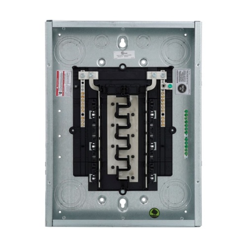 Eaton BRP12N125GW - Ground bar|white cover,125 A,X1,Aluminum,Cover included,NEMA 1,Metallic,10 kAIC,BR,Combination,24 Circuits,Single-pole,12 Spaces,Two hots, a neutral, and a ground,Single-phase,Type BR 1-inch breakers,120/240V