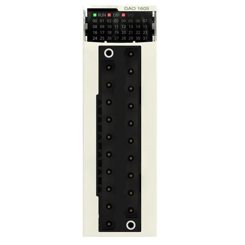 Schneider Digital Output Module 16 Discrete Outputs 220 VAC 240 VAC Hardened Extended Temperature uses 20 point BMXFTB2000 terminal block.