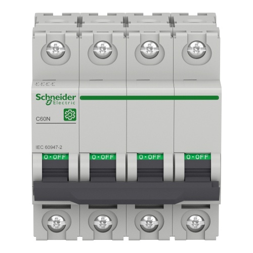 Schneider Electric M9F11420 Multi 9 Miniature 20 Amp Four Pole Non UL Breaker with up to 440 VAC or 250 VDC and Din Rail mount. C Curve 7-10 x Amp Rating Protection.