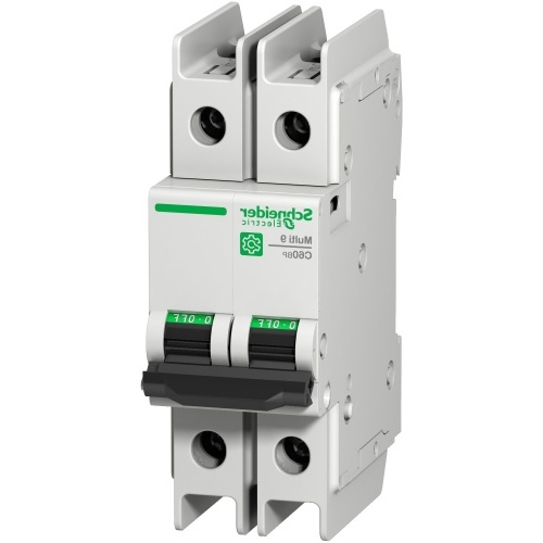 Schneider Electric M9F42202 Multi 9 Miniature 2 Amp Two Pole Branch Breaker with up to 440 VAC and Din Rail mount. C Curve 7-10 x Amp Rating Protection.