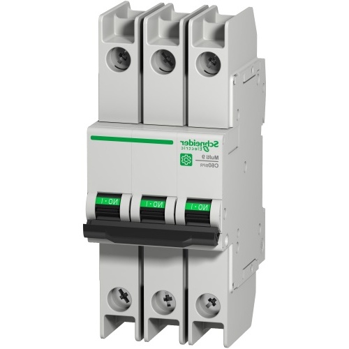 Schneider Electric M9F53325 Multi 9 Miniature 25 Amp Three Pole Branch Breaker with up to 440 VAC and Din Rail mount. D Curve 10-14 x Amp Rating Protection.
