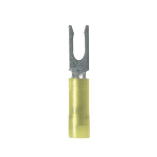 Locks in place for secure connection Fork design provides for fast and easy installation, without the need to remove fastener Insulation support helps to prevent wire damage in bending applications Internal barrel serrations assure good wire contact and maximum tensile strength