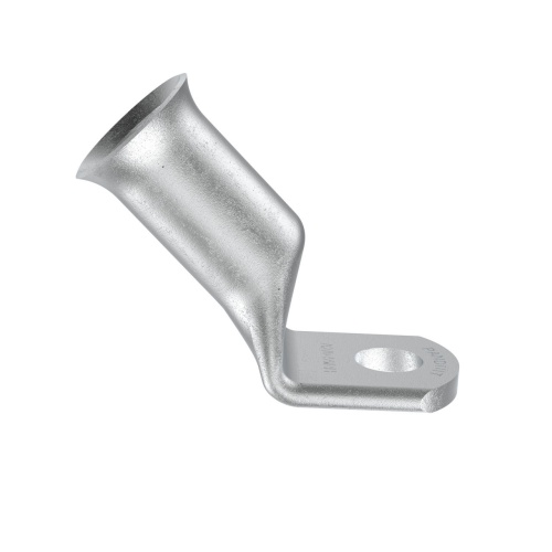 Panduit A2/0-56RH-C Copper Compression Battery Cable Lug, 2/0 AWG, 5/16" Stud with a 45 degree bend are tin plated to meet ASTM Class C specification for corrosion resistance. Manufactured with a standard barrel without an inspection window preventing contaminents from entering. Flared barrel entry for ease of inserting flex conductors. High pullout strength for heavy duty applications and military pullout strength requirements when using Panduit recommended tooling. - Consult cable manufacturer for voltage stress relief instructions with applications greater than 2000 V