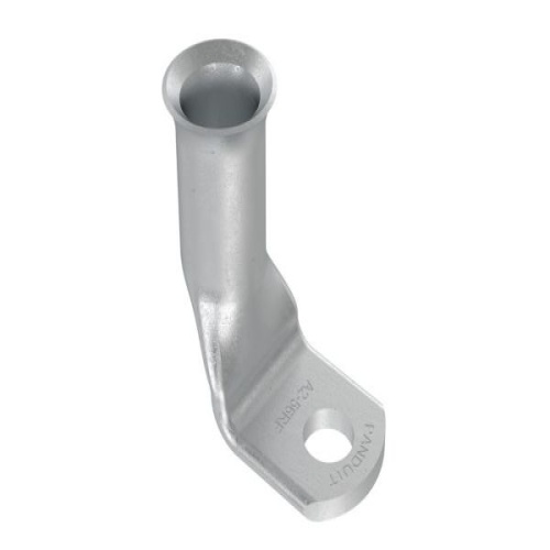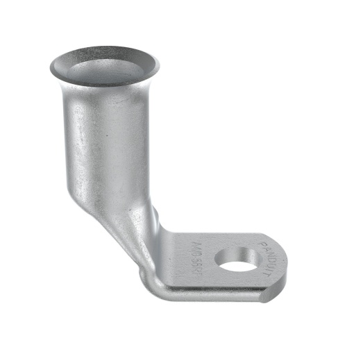 Panduit A4/0-56RF-C Copper Compression Battery Cable Lug, 4/0 AWG, 5/16" Stud with a 90 degree bend are tin plated to meet ASTM Class C specification for corrosion resistance. Manufactured with a standard barrel without an inspection window preventing contaminents from entering. Flared barrel entry for ease of inserting flex conductors. High pullout strength for heavy duty applications and military pullout strength requirements when using Panduit recommended tooling. - Consult cable manufacturer for voltage stress relief instructions with applications greater than 2000 V