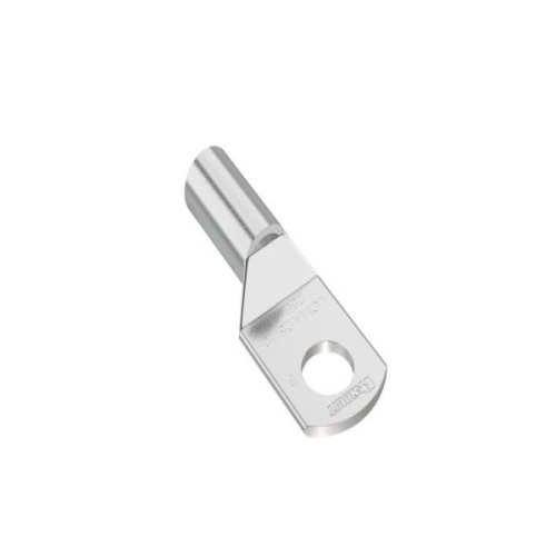 Panduit LCMA16-10-C Tin-Plated Copper Compression Metric Lug, one-hole, standard barrel, has a rounded tongue convenient for use in tight spaces and a beveled wire entry for fast and easy installation. The inspection window aids to visually assure full conductor insertion, and the tin-plate material helps to inhibit corrosion. UL Listed and CSA Certified.