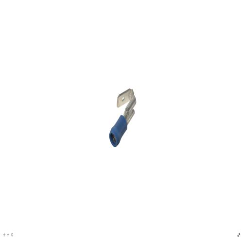 Panduit DV14-250P-LYY - The vibration resistant piggyback disconnect is made of brass and is tin-plated. It is barrel insulated in blue vinyl housing. It has a tab size of 0.250 x 0.032" (6.3 x 0.8 mm) and supports a wire range of 16-14 AWG (1.5-2.5 mm²). It is 0.88" (22.4 mm) long and 0.29" (7.4 mm) wide. The disconnect has a standard barrel configuration and a sleeved barrel. It comes in bottles of 50.
