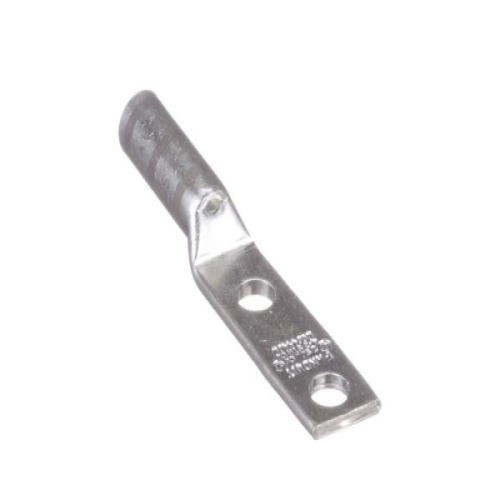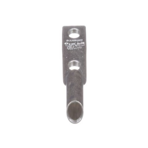 Panduit LCC4-14DW-L - Two-hole, long barrel lug with window, #4 — #3 AWG STR, #2 AWG SOL wire, 1/4 stud hole, 1 hole spacing.