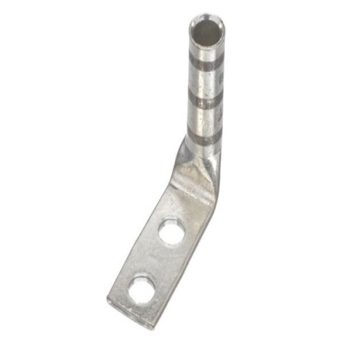 Panduit LCCX4-14AF-L - Two-hole, flex lug, long barrel, #4 AWG wire, 1/4 stud hole, .63 hole spacing, 90° angle tongue.