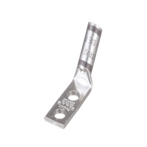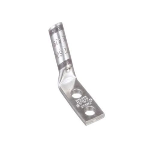 Panduit LCD4-14AH-L - Two-hole, standard barrel lug with window, #4 — #3 AWG STR, #2 AWG SOL wire, 1/4 stud hole, .63 hole spacing, 45° angle tongue.