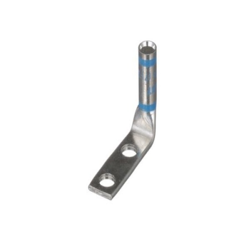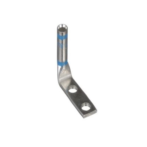 Panduit LCD6-14BF-L - Two-hole, standard barrel lug with window, #6 AWG wire, 1/4 stud hole, .75 hole spacing, 90° angle tongue.