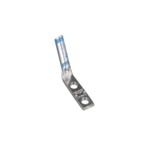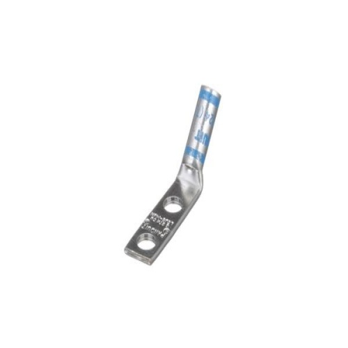 Panduit LCD6-14BH-L - Two-hole, standard barrel lug with window, #6 AWG wire, 1/4 stud hole, .75 hole spacing, 45° angle tongue.