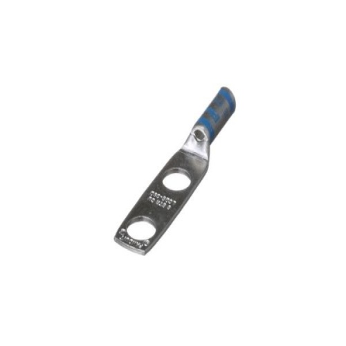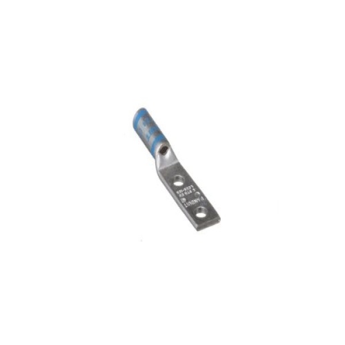 Panduit LCD6-38D-L - Two-hole, standard barrel lug with window, #6 AWG wire, 3/8 stud hole, 1 hole spacing.