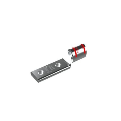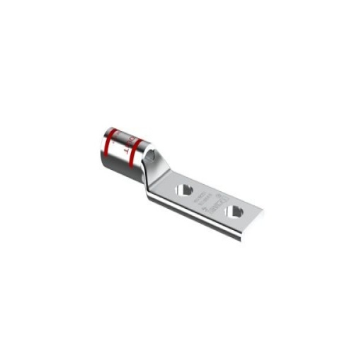 Panduit LCD8-10A-L Tin-Plated Copper Compression Connector Lug, two-hole, standard barrel, has color-coded barrels marked with Panduit and specified competitor die index numbers for proper crimp die selection. An inspection window aids to visually assure full conductor insertion, and the tin-plate material helps to inhibit corrosion. UL Listed and CSA Certified.