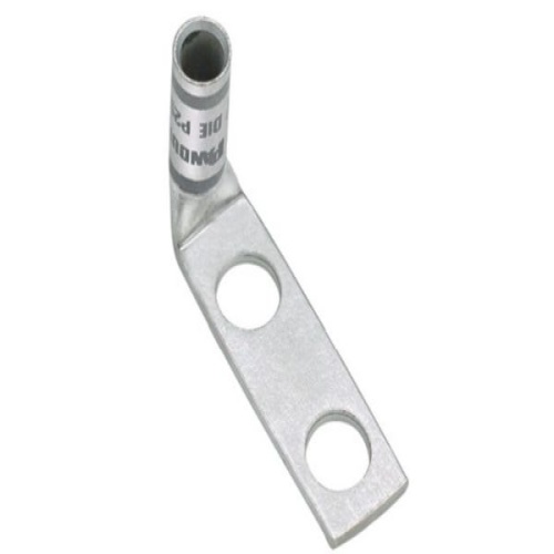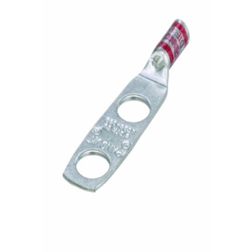 Panduit LCD8-14BF-L - Two-hole, standard barrel lug with window, #8 AWG wire, 1/4 stud hole, .75 hole spacing, 90° angle tongue.