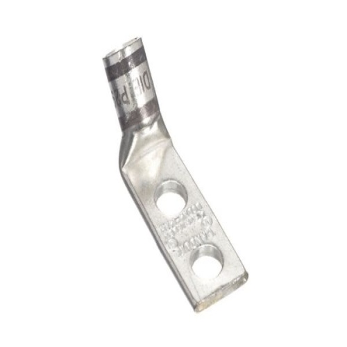 Panduit LCDX4-14AH-L - Two-hole, flex lug, #4 AWG wire, 1/4 stud hole, .63 hole spacing, 45° angle tongue.