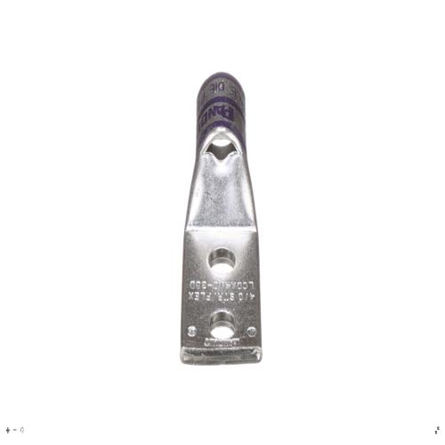 Panduit LCDX4-38D-L - Two-hole, flex lug, #4 AWG wire, 3/8 stud hole, 1 hole spacing.