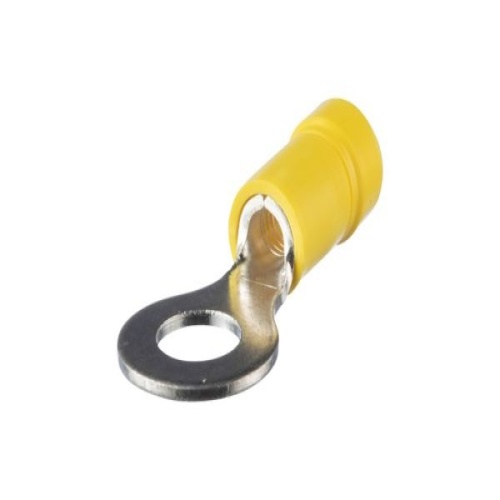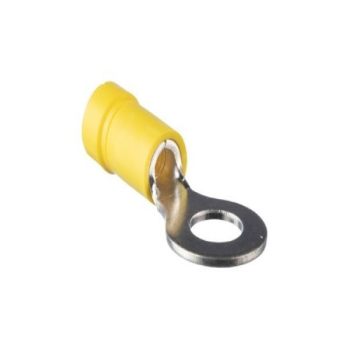 Panduit StrongHold EV10-14RB-Q Contractor Grade Vinyl Insulated Ring Terminals are a reliable and economical option that withstand a wide range of general-purpose applications. The ring tongue design assures a secure connection in high vibration applications. Accommodates 12-10 AWG, compatible with #1/4 Stud (M6), are yellow in color, and come in packages of 25. - EV10-14RBK-Q replaces EV10-14RB-Q