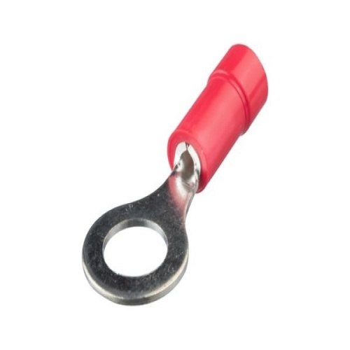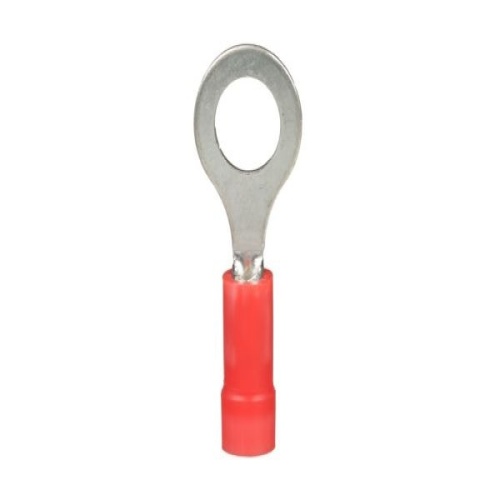 Panduit StrongHold EV18-14RB-Q Contractor Grade Insulated Ring Terminals are a reliable and economical option that withstand a wide range of general-purpose applications. The ring tongue design assures a secure connection in high vibration applications. Accommodates 22-18 AWG, compatible with #1/4 Stud (M6), are red in color, and come in packages of 25. - EV18-14RBK-Q replaces EV18-14RB-Q