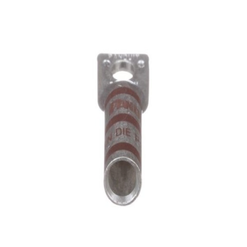 Panduit LCB2-14-Q Tin-Plated Copper Compression Lug, one-hole, long barrel, has color-coded barrels marked with Panduit and specified competitor die index numbers for proper crimp die selection. The long barrel maximizes the number of crimps and provides premium wire pull-out strength and performance. The generously beveled wire entry prevents bent back strands when inserting the conductor into the barrel. UL Listed and CSA Certified.