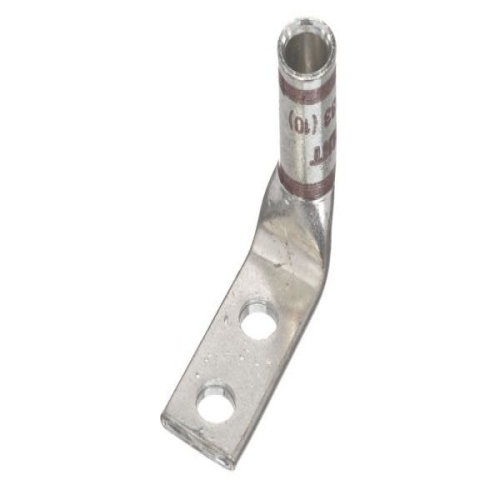 Panduit LCD2-14AF-Q - Two-hole, standard barrel lug with window, #2 AWG wire, 1/4 stud hole, .63 hole spacing, 90° angle tongue.