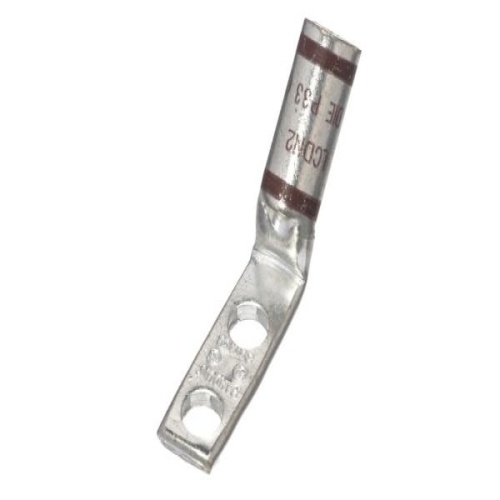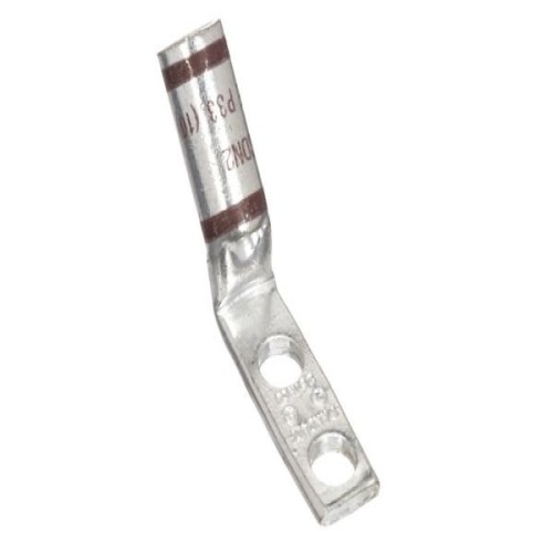 Panduit LCDN2-14AH-Q - Two-hole, standard barrel with window, narrow tongue lug, #2 AWG wire, 1/4 stud hole, .63 hole spacing, 45° angle tongue.