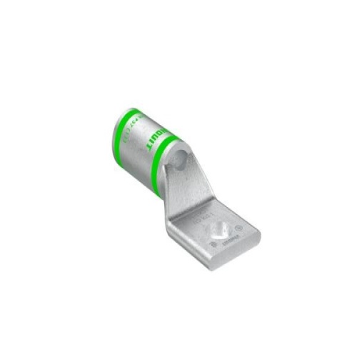 Panduit LCA1-14-E Tin-Plated Copper Compression Lug, one-hole, standard barrel, has color-coded barrels marked with Panduit and specified competitor die index numbers for proper crimp die selection. An inspection window aids to visually assure full conductor insertion, and the tin-plate material helps to inhibit corrosion. UL Listed and CSA Certified to 35 KV and temperature rated to 90°C.