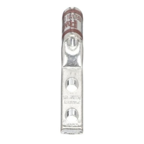 Panduit LCD1-14A-E - Two-hole, standard barrel lug with window, #1 AWG wire, 1/4 stud hole, .63 hole spacing.