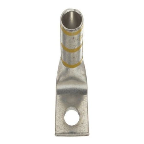 Panduit LCA250-38H-X - One-hole, standard barrel with window lug, 250 kcmil cable, 45° angle tongue, 3/8 stud hole.