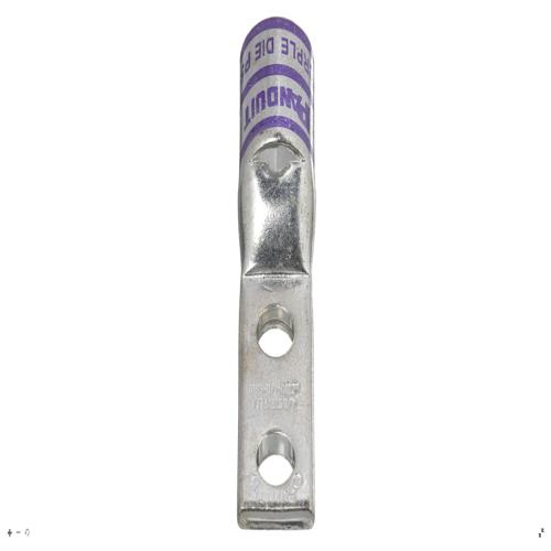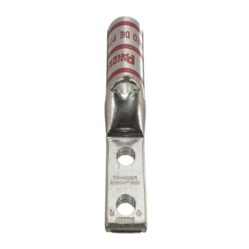 Panduit LCC350-38D-X - Two-hole, long barrel lug, 350 kcmil cable, 3/8 stud hole, 1 hole spacing.