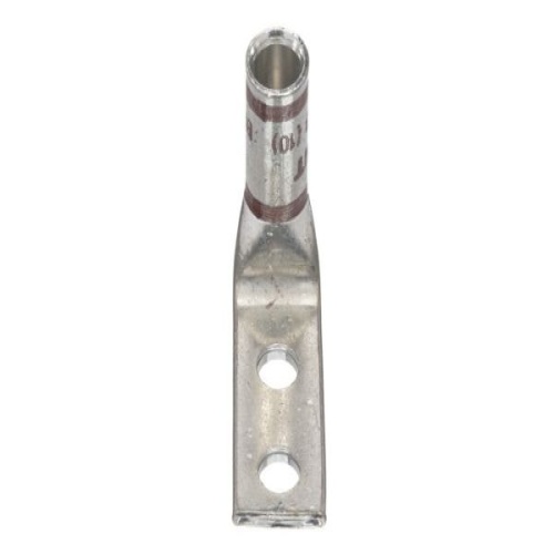 Panduit LCD2/0-14AF-X - Two-hole, standard barrel lug with window, 2/0 AWG wire, 1/4 stud hole, .63 hole spacing, 90° angle tongue.