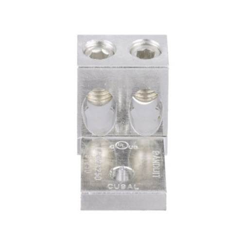 Panduit LAM2A600-12-6Y Tin-Plated Aluminum Mechanical Lug, one-hole, two barrel, is made from extruded aluminum alloy to provide premium electrical and mechanical performance for wide wire range-taking capability that helps minimize inventory requirements. The plated steel or aluminum set screw provides a durable electrical contract between conductor and Lug. UL Listed and CSA Certified for use up to 600 V and UL temperature rated 90 Degrees Celsius. - LAM2A600-12-6Y replaces LAM2A600-12-6