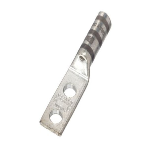 Panduit LCCX4-12-L Tin-Plated Copper Compression Lug, two-hole, long barrel, has color-coded barrels marked with Panduit and specified competitor die index numbers for proper crimp die selection. The long barrel maximizes the number of crimps and provides premium wire pull-out strength and performance. The generously beveled wire entry prevents bent back strands when inserting the conductor into the barrel. UL Listed and CSA Certified.