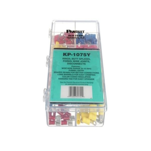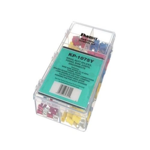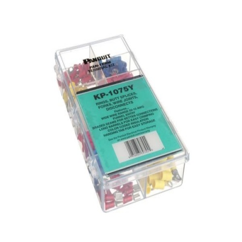 Panduit KP-1075Y - Terminal kit without crimping tool. Includes the following: (20) PV18-8R; PV18-6F; PV14-8F; PV14-10R; (10) PV10-8R; PV10-10R; DNF14-250; DNF18-250; BSV18X; BSV14X; BSV10X; (10) JN418-212. - KP-1075Y replaces KP-1075