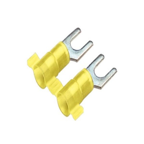 Panduit PN10-10F-2K - Fork Terminal, nylon insulated, metal insulation grip sleeve, 12 - 10 AWG wire range, #10 stud size.