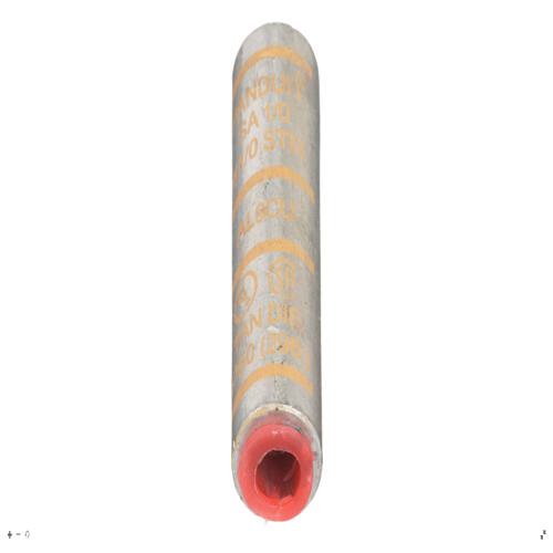 Panduit SA600-8 - Aluminum Compression Splice, Tin-Plated to inhibit corrosion, high conductivity thick wall aluminum, Factory pre-filled joint compound and sealed with easy pull-out end plug to inhibit corrosion, Panduit and specified competitor die index numbers marked on barrel for proper crimp die selection, Internal solid stop prevents over-insertion of conductor, UL Listed and CSA Certified to 35 KV and temperature rated to 90C when crimped with Panduit and specified competitor crimping tools and dies.