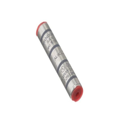 Panduit SA6-T - Aluminum Compression Splice, Tin-Plated to inhibit corrosion, high conductivity thick wall aluminum, Factory pre-filled joint compound and sealed with easy pull-out end plug to inhibit corrosion, Panduit and specified competitor die index numbers marked on barrel for proper crimp die selection, Internal solid stop prevents over-insertion of conductor, UL Listed and CSA Certified to 35 KV and temperature rated to 90C when crimped with Panduit and specified competitor crimping tools and dies.