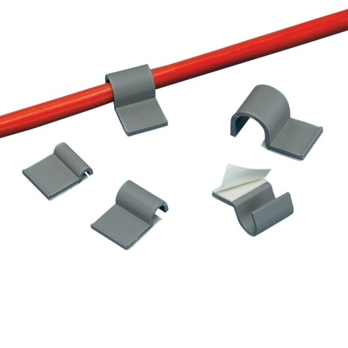 Holds cords, cable and tubing, adhesive pad for confined areas