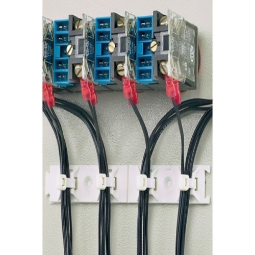 Panduit ABMQS-A-C - Panduit’s ABMQS-A-C multiple bridge adhesive backed cable tie mounts have 4-way cable tie entry making part orientation fast and easy. They are made of ABS plastic, are mounted with rubber adhesive tape and have a hole spacing of 2.5" (63.5 mm). The mounts are 5.1" long x 0.75" wide (130.3 x 19.0 mm). They can be used with miniature, intermediate, and standard cable ties and are designed for indoor environments. They are white in color and come in packages of 100. - For Use With: Miniature, Intermediate Cross-Section Ties