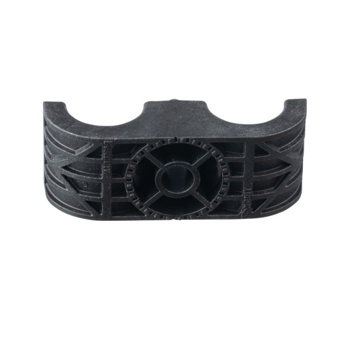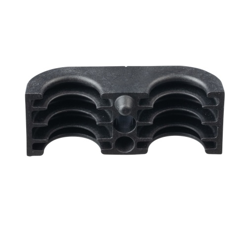 Panduit CLC62X2S8TL370 - Panduit CLC62X2S8TL370 is a 2-position half clamp that pairs with another to form a fully secured clamp used to secure 5/8" corrugated loom tubing. The pieces include ribbing to interface with the ridges of the corrugated loom tubing. These are made of heat-stabilized glass-filled nylon and are black in color. These are sold in packages of 250 pieces (bag contents provide 125 finished clamps). - Each unit is a half piece, so 2 pieces are needed for a full clamp. Sold in bags of 250 for 125 clamps. Sized for 5/8" corrugated loom tubing.