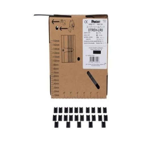 Panduit DTKEH-0 - Panduit DTKEH-0 Dura-Ty™ Cable Tie Kit is weather, chemical, and UV-resistant for harsh outdoor power and communications applications. The durable locking mechanism, complete with double stainless steel locking barbs, provides a consistent, reliable connection and high-impact resistance and strength. Extra-Heavy cross section, are made of Weather Resistant Acetal. They are black in color and come in a package with 1 reel of 50' (15,240mm) strapping and 25 heads. - For Use With: GS4EH-E