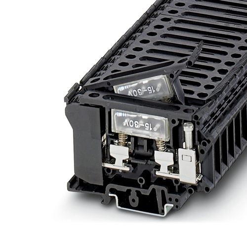 UK 6,3-HESILED 24 Phoenix Contact 3004265 Fuse modular Terminal Block - UK 6,3-HESILED 24 - Fuse Terminal Block for cartridge fuse insert, Screw Connection 1 Level 10.2 mm with 2 Connections. Not Grounded, Fused Black. 24 Volt, 10 Amp max rating.